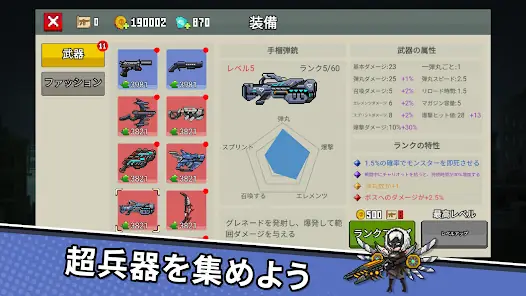 Select your favorite character and various weapons, choose random skills in combat to reflect diverse growth strategies and genres, yet maintain the same extremely smooth controls, hot action scenes, and cool vibes! Survive on a bio-chemical battlefield!